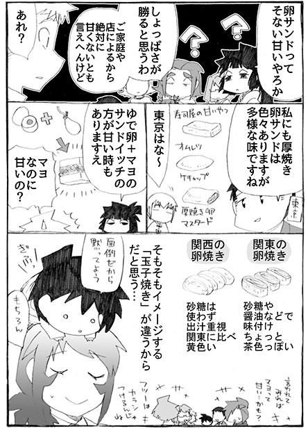 京都で茹で卵+マヨのサンドイッチを食べたら、ちょっと甘くてびっくりしました。その店だけかもしれませんが。