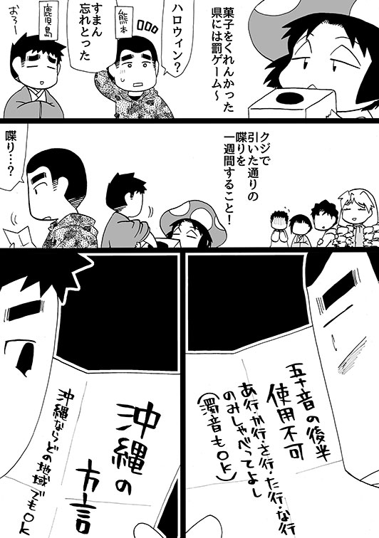 熊本県民の方は五十音の前半だけで、鹿児島県民の方は沖縄の方言で、良かったらコメント下さい(無茶)