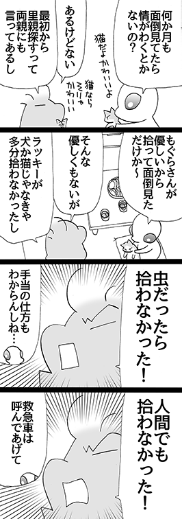 私は人間なら拾わないので、多分私にとって人間<猫。
