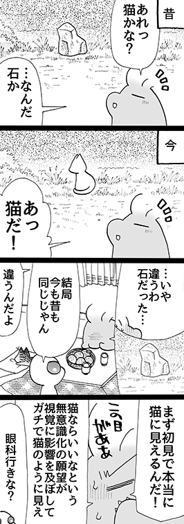 昔→ぱっと見、よくわからんものを猫かな?と思う